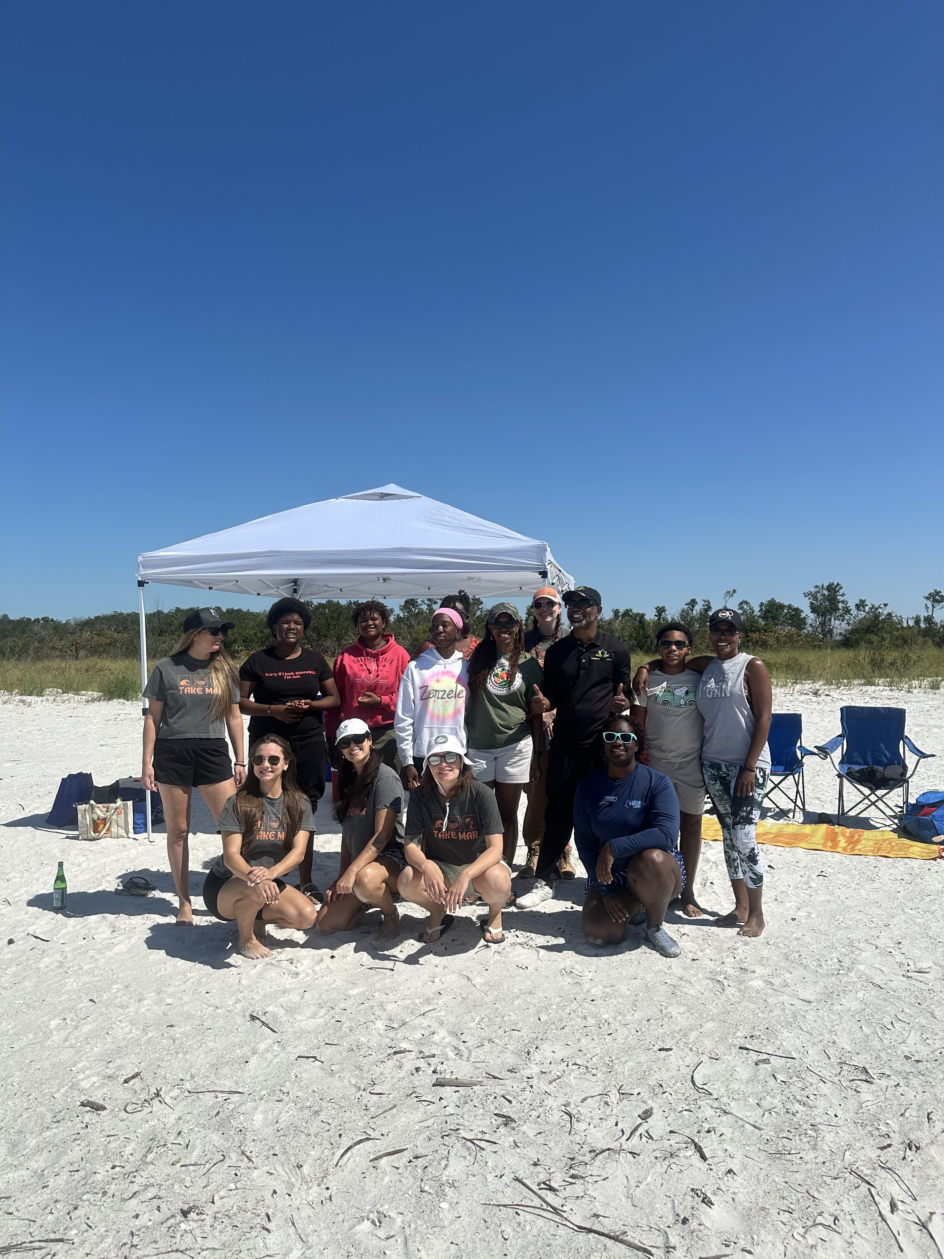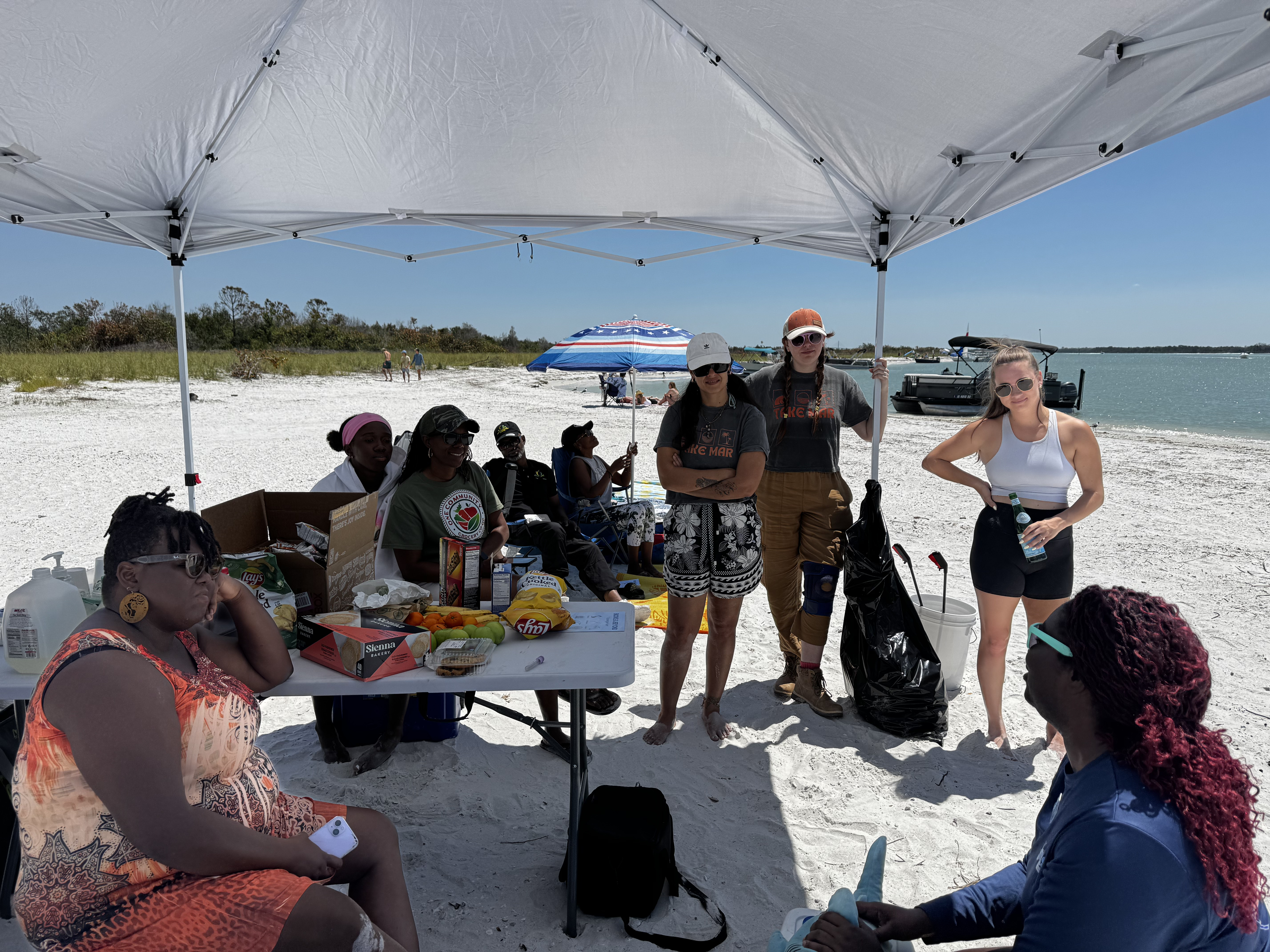 Once on Shell Key, we were welcomed with a generous and wholesome lunch provided by Erica with One Community Grocery Co-op. Her delicious spread ensured everyone had the energy to explore the island, collect seashells, and bond with each other while enjoying the escape of nature – in perfect alignment with Take MARs mission.
