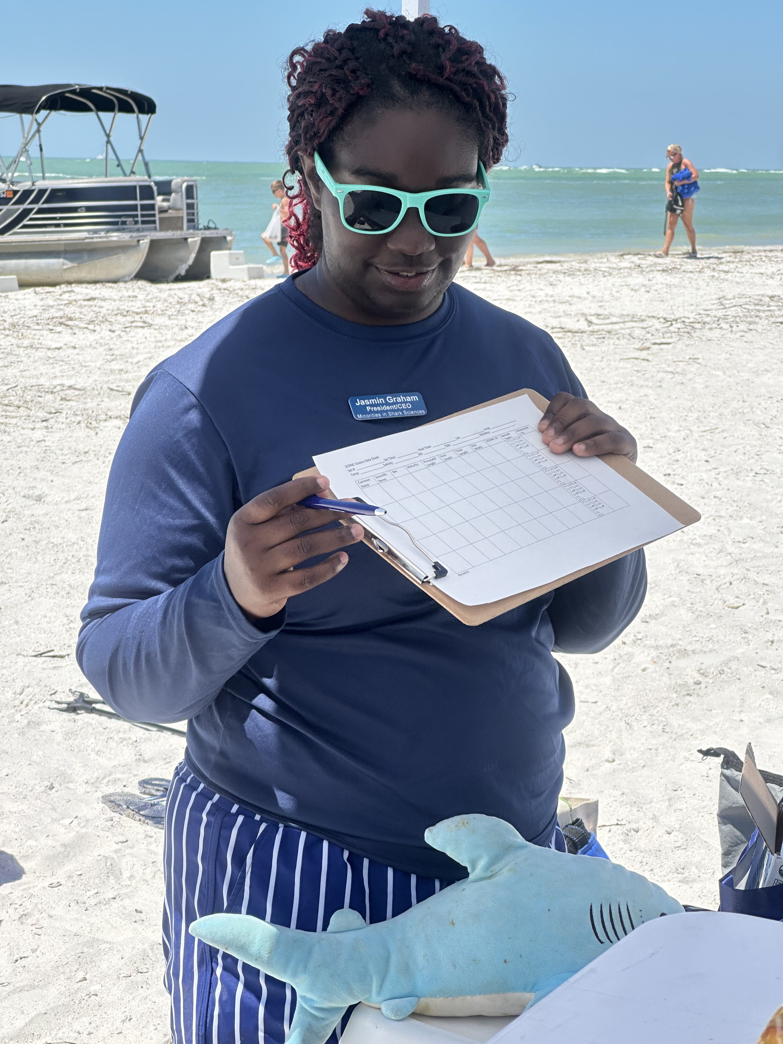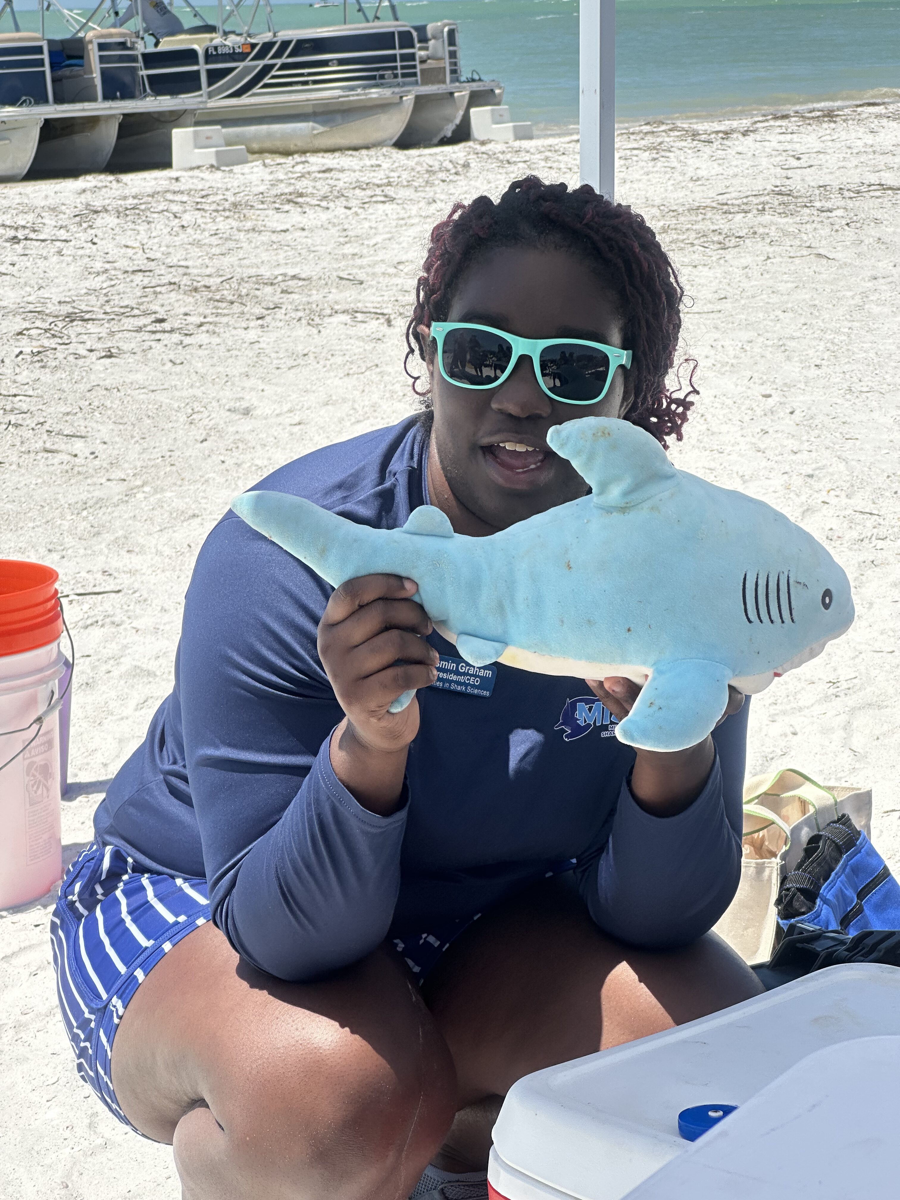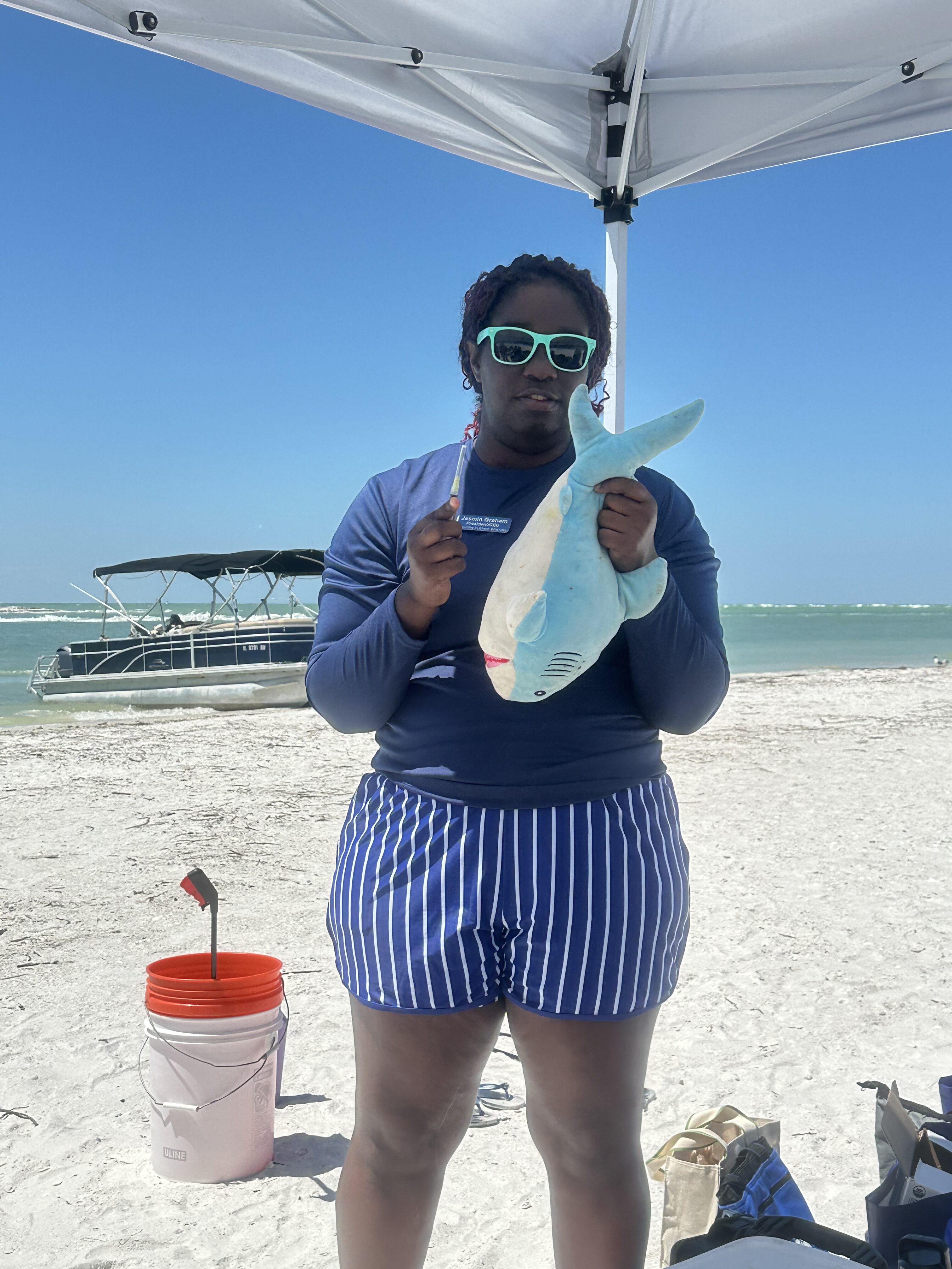 A huge highlight of the day was the hands-on shark science demonstration by Jasmine from Minorities in Shark Science (MISS). Using their trusty stuffed shark, Timmy, Jasmine walked attendees through the real-life field process of studying sharks – including blood sampling, checking vitals, and explaining all the tools marine scientists use.
