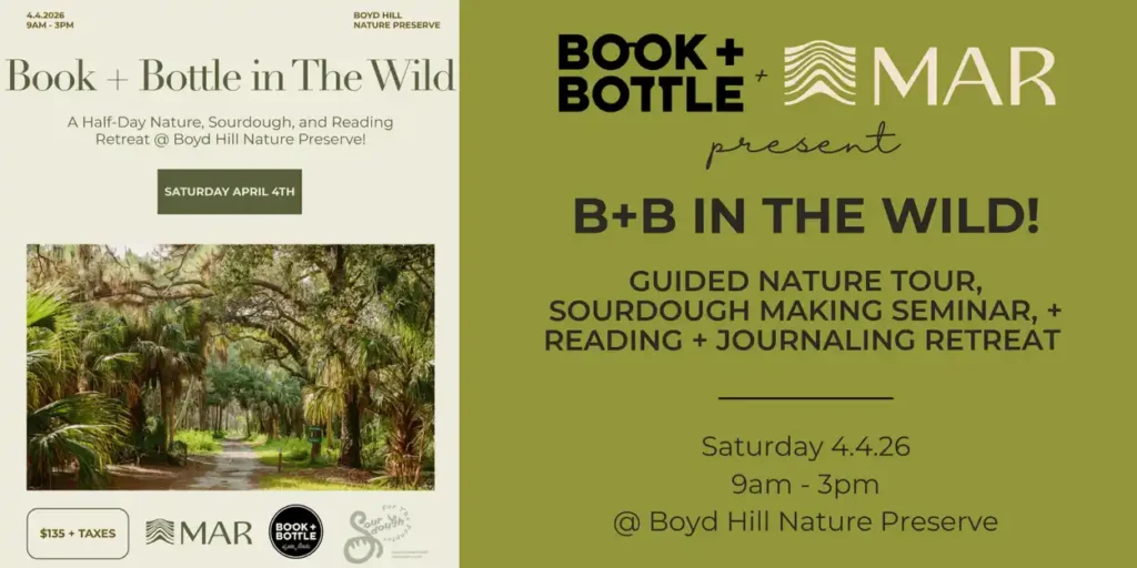 Book + Bottle in the Wild is the adult field trip you didn’t know you needed! We’re combining all of our favorite things and taking them to Boyd Hill Nature Preserve for Earth Month. This event is in proud partnership with MAR (Mindful Action and Regeneration) and Kelsey Yates from Sourdough for the People to […]