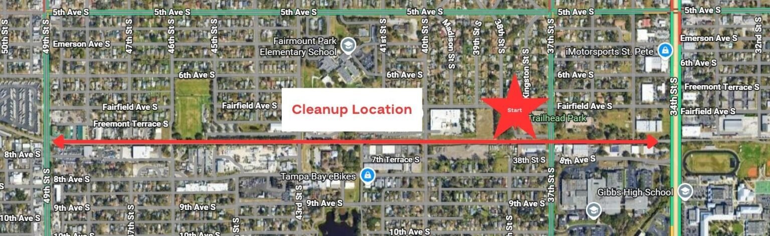 What to Expect: A community cleanup along the Pinellas Trail in a welcoming, family-friendly environment. The cleanup will run from 49th Street S. to 34th Street S., beginning at Trailhead Park. This is a great chance to connect with neighbors while making a real environmental impact.