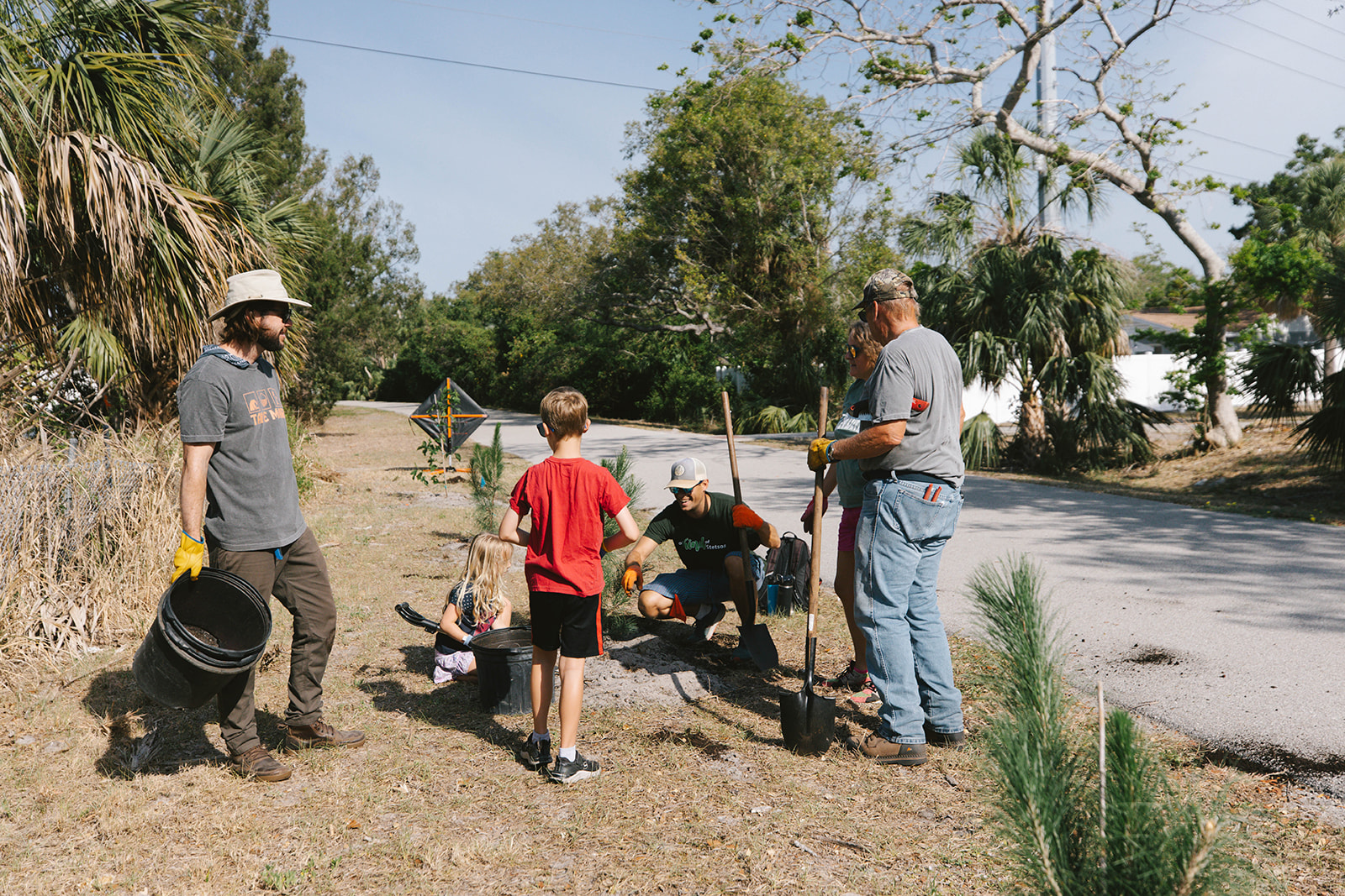 This planting would not have been possible without support from the City of St. Petersburg. Special thanks to Maeven Rogers and Dean Hay for helping make it happen! The City’s team helped auger through the tough topsoil and delivered mulch and soil directly to our planting sites, giving our volunteers the support they needed to focus on digging, panting, watering, learning, and connecting with the land.