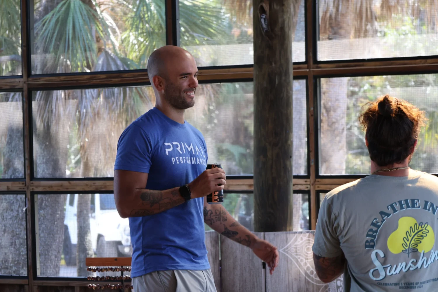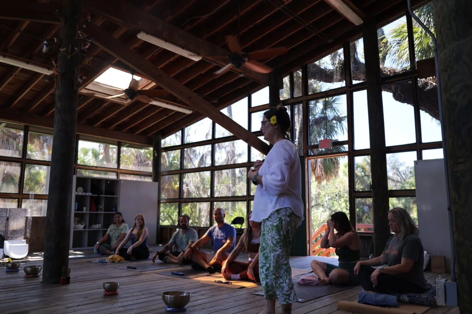 The day began bright and early at 9 a.m. with a restorative yoga flow led by Andrew Ward of Sunstate Yoga. As sunlight filtered through the cabin overlooking the water, participants gently stretched and grounded themselves in mindfulness, setting the tone for a day of reflection and renewal.