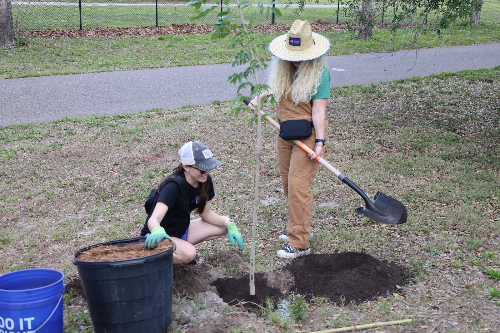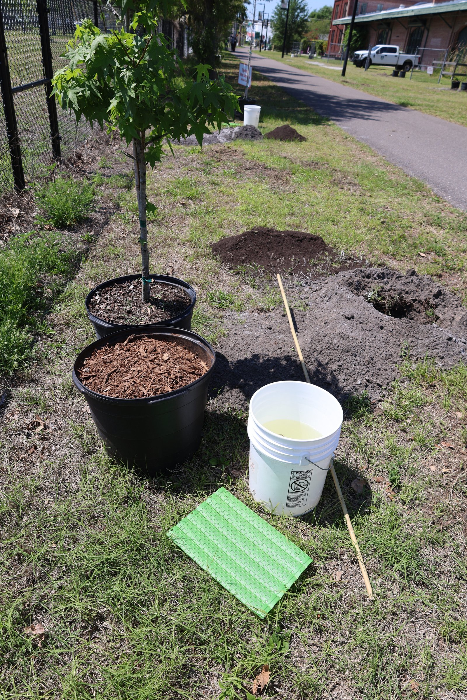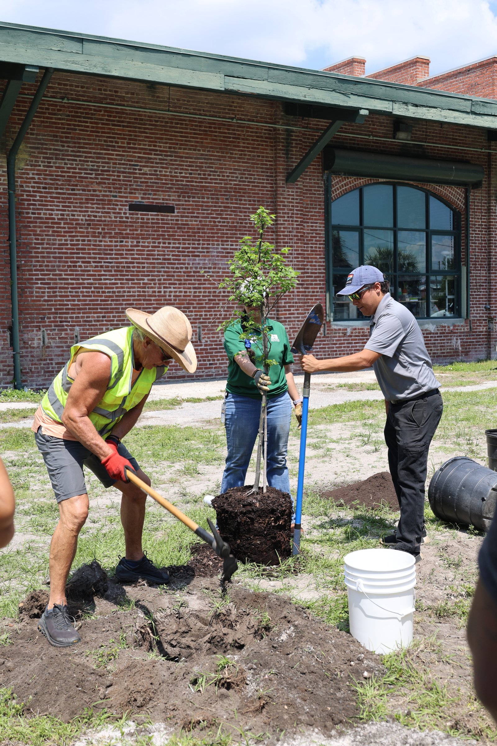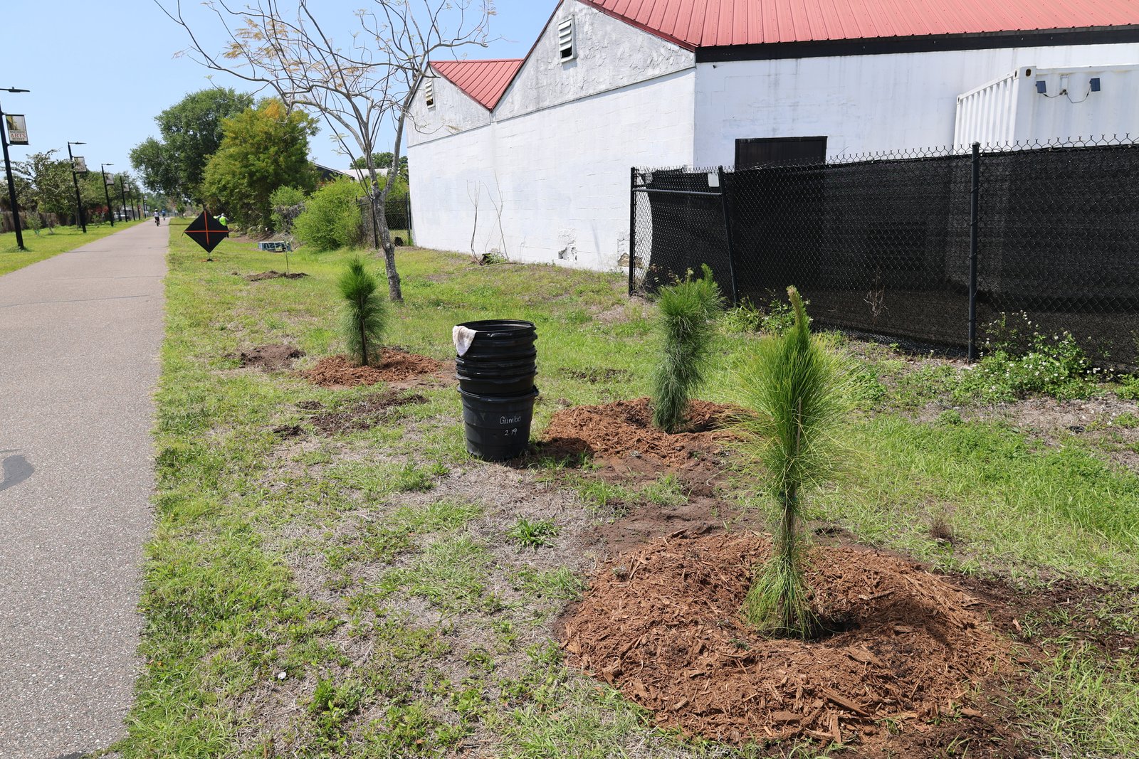 We planted a diverse mix of native and Florida-friendly species, including sand live oaks, sweetgum, winged elms, slash pines, yaupon hollies, gumbo limbos, and orange geigers. This variety helps ensure long-term success by matching the right trees to the conditions of the site while supporting local wildlife and increasing canopy cover along the trail.