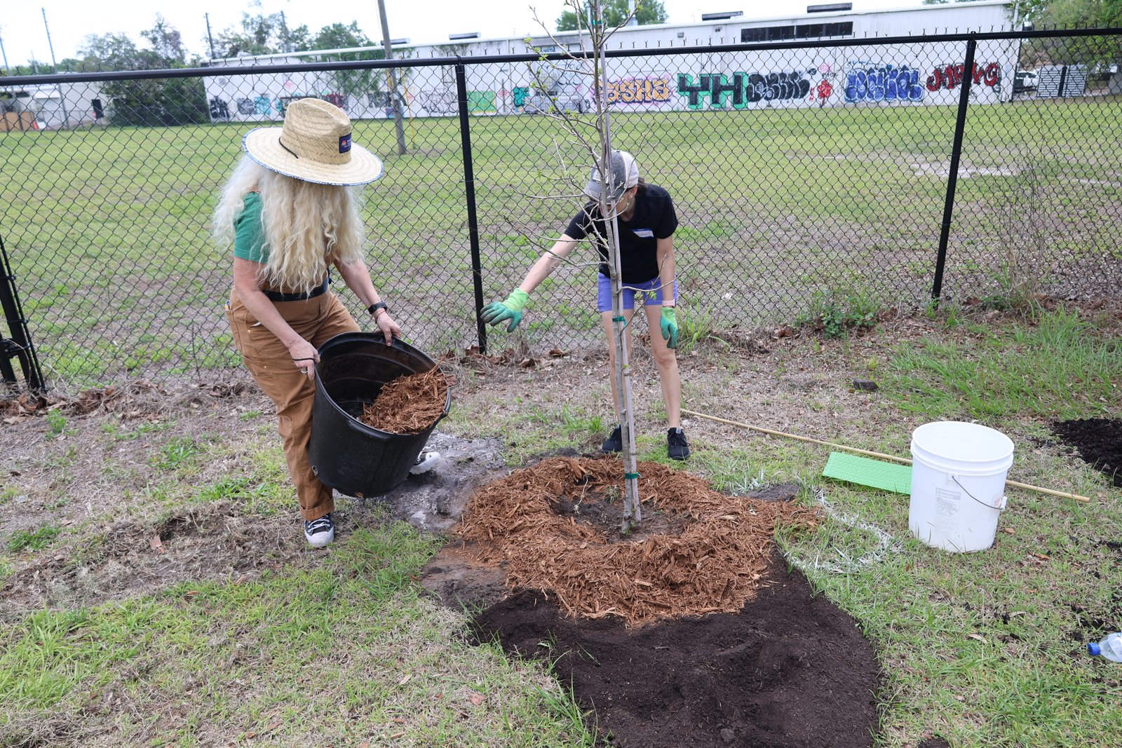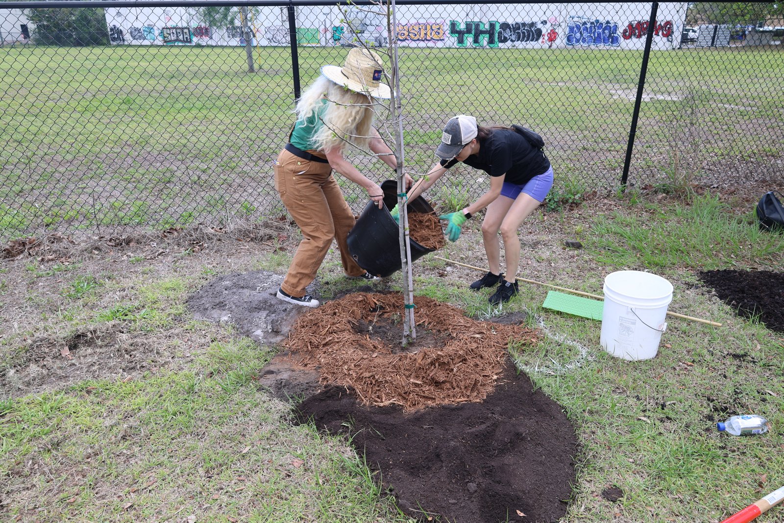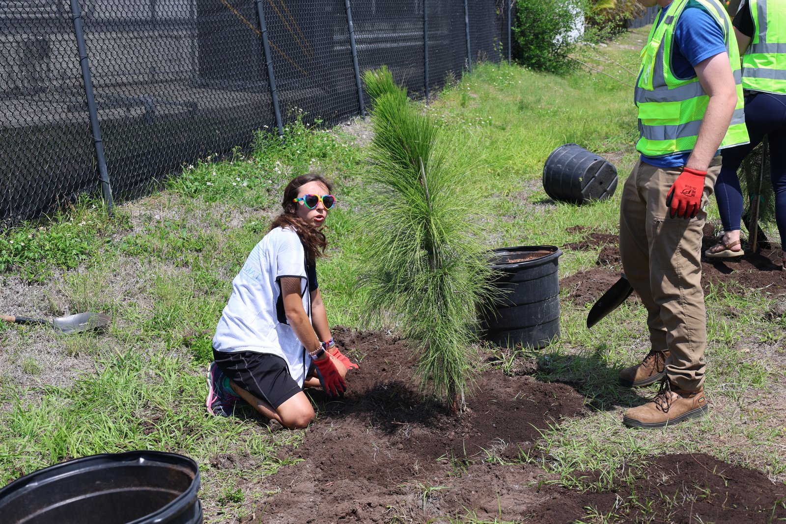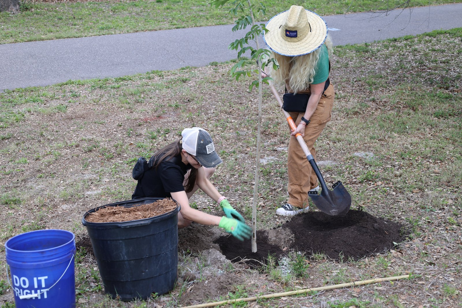We planted a diverse mix of native and Florida-friendly species, including sand live oaks, sweetgum, winged elms, slash pines, yaupon hollies, gumbo limbos, and orange geigers. This variety helps ensure long-term success by matching the right trees to the conditions of the site while supporting local wildlife and increasing canopy cover along the trail.
