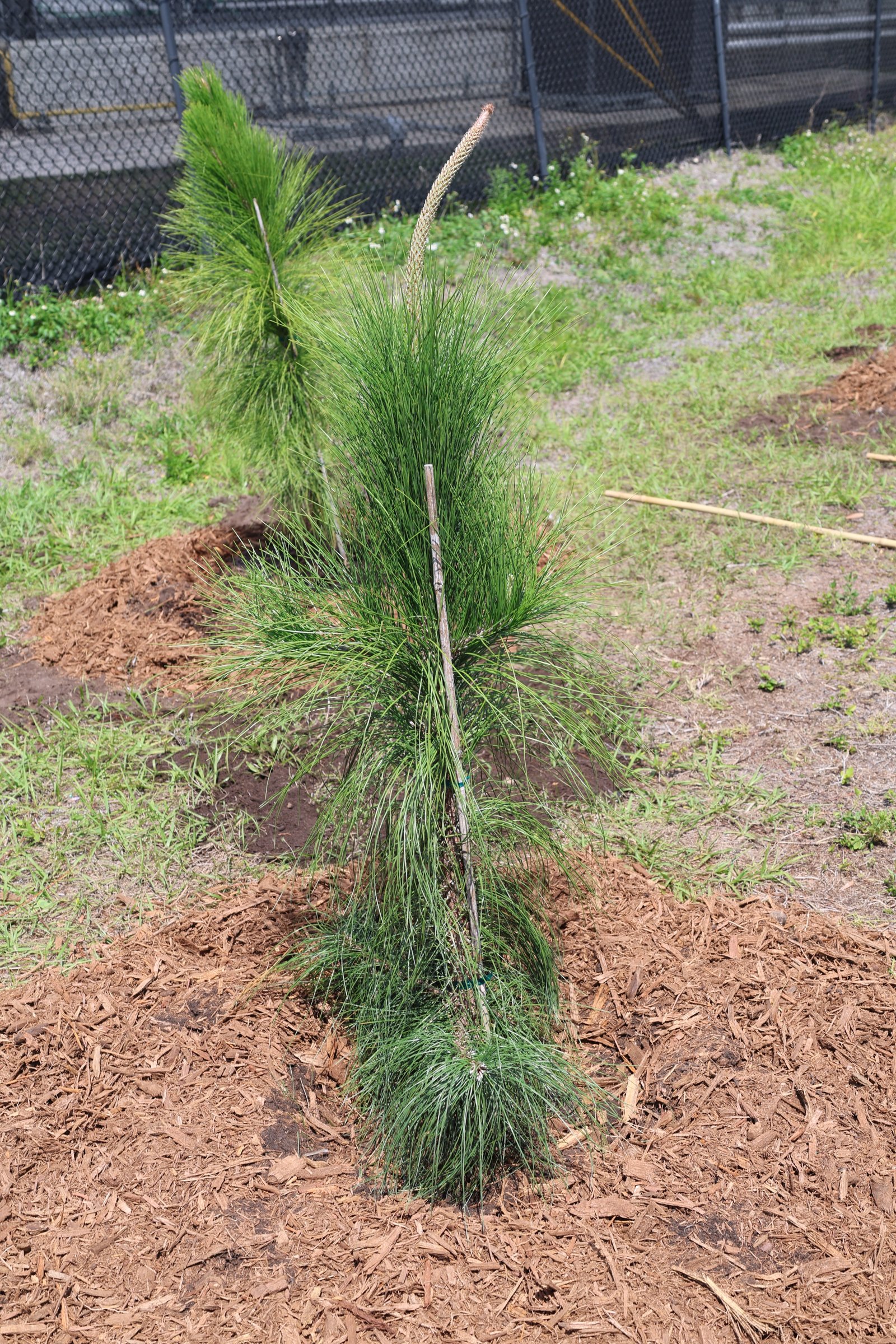 Slash pines are built for Florida conditions. They handle full sun, sandy soils, and periods of drought once established. They also grow relatively quickly, helping to establish vertical structure early on and providing habitat for birds and other wildlife.